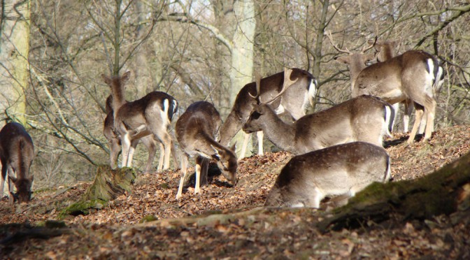 Der 7,5 ha große und von Buchen bewachsene Wildpark ist Teil des Gräflichen Parks. Von diesem ist es durch einen so genannten „Ha Ha-Graben“ abgetrennt ist. Bei einem Ha Ha-Graben handelt sich um einen trockenen, aber tiefen Graben mit steilen Böschungen. Als landschaftsarchitektonisches Gestaltungsmittel ersetzt er Mauern oder Zäune, welche den Landschaftseindruck stören würden. Der Wildpark beherbergt rund 30 Stück Damwild, sowohl die normalfarbigen bräunlichen Tiere als auch eine helle Farbvariante. Obwohl Damwild heute ein häufiger Bewohner heimischer Wälder ist, handelt es sich ursprünglich um eine in Klein- und Vorderasien beheimatete Hirschart. In der Antike wurde das Damwild allerdings bereits in Südeuropa angesiedelt. Später, im Mittelalter wurde es dann als Parkwild auch in Mitteleuropa eingeführt und vermehrte sich später erfolgreich in freier Natur. So nah wie im Bad Driburger Wildgehege wird man ihn auf Wanderungen durch den Naturpark Teutoburger Wald aber wohl kaum zu Gesicht bekommen. Weitere Bewohner des Wildparks sind zwei Kamerunschafe. Das kleine Kamerunschaf stammt ursprünglich aus Westafrika, es gilt als äußert anspruchslos, kälteunempfindlich und widerstandsfähig. In Europa werden die rehbraunen Tiere gern zur Beweidung größerer Grasflächen eingesetzt. Die Kamerunschafe sind unkompliziert zu halten, sie besitzen keine typische Schafwolle, müssen also auch nicht geschoren werden.